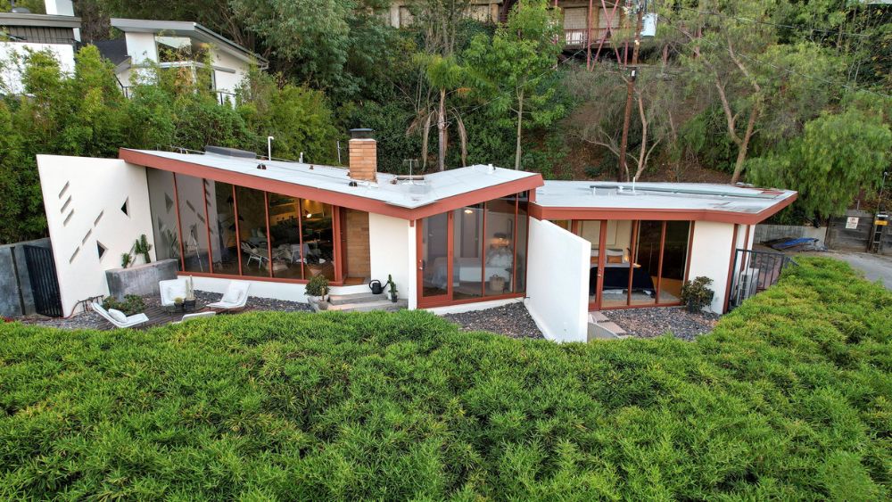 One of the most striking features of the Lautner House is its open floor plan, which blurs the boundaries between indoor and outdoor living. Floor-to-ceiling glass walls seamlessly connect the interior living spaces with the surrounding landscape, creating a sense of continuity and harmony with nature.